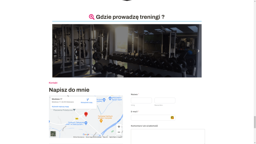 Umieściliśmy slajder ukazujący miejsca prowadzenia treningów aby klienci mogli w łatwy sposób wybrać dogodne miejsce do odbywania treningów.