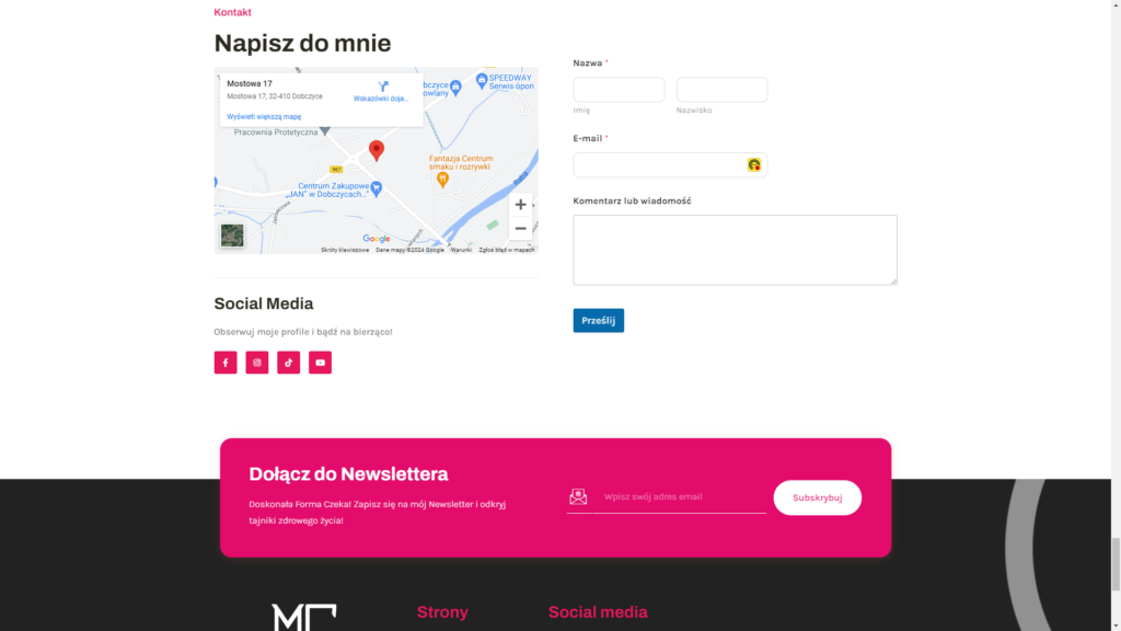 Zapewniamy łatwy dostęp do formularza kontaktowego oraz informacji kontaktowych, zachęcając do nawiązania współpracy.Uruchomiliśmy również formularz do zapisania się na Newsletter.